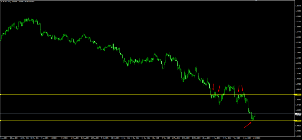 На изображении 4 видно что пришлось построить два уровня так как закрытия цен примерно с одинаковой частотой происходили рядом, тем самым образуя зону ретеста. В таком случае всю зону можно считать уровнем, и принимать решение о входе в позицию только после закрытия цен выше или ниже зоны.